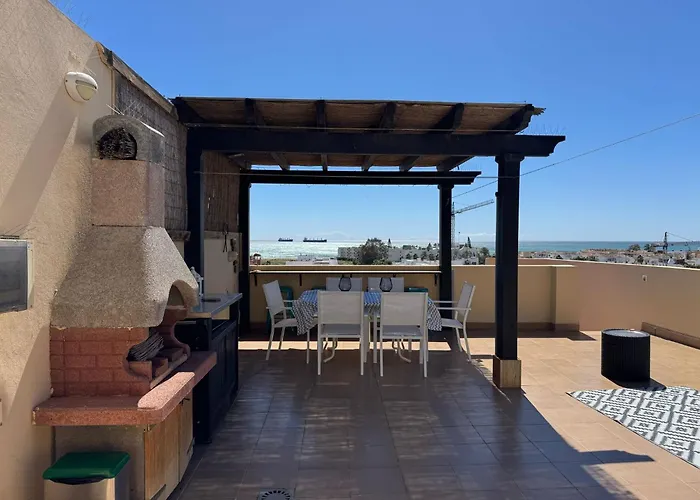 Atico Con Piscina Privada Cala Marques - Vera Playa appartementen van 75 m² bieden snelle toegang tot verschillende stadsoriëntatiepunten, zoals het strand van Vera-Playa, gelegen op op loopafstand van nog geen 5 minuten ervandaan. Het appartement verwelkomt gasten om te genieten van een kust uitzicht op de zee vanaf een terras.